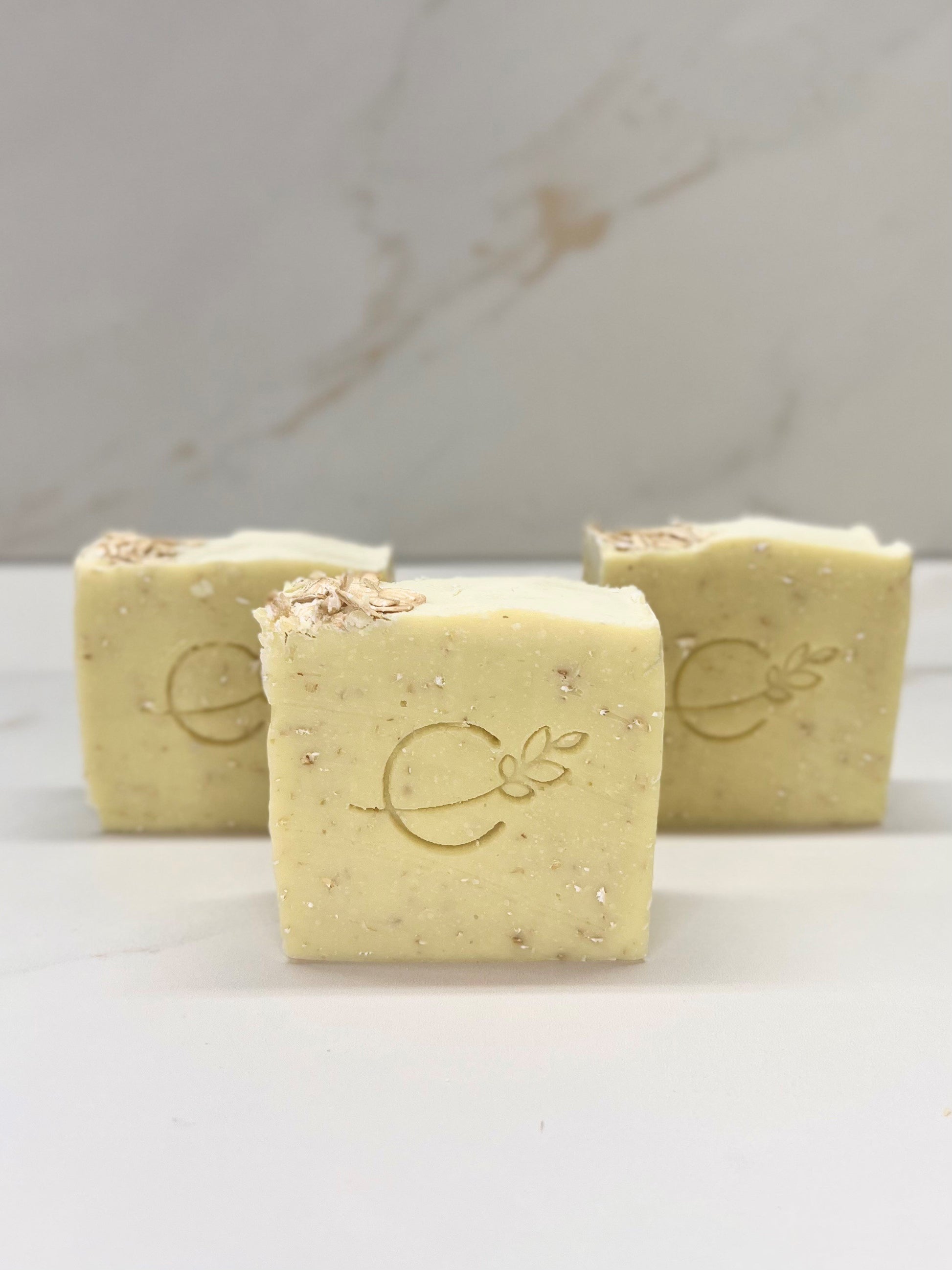 Saponified Olive Oil, Organic Coconut Oil, Organic Shea Butter, Distilled Water, Oatmeal, Lavender Essential Oil
